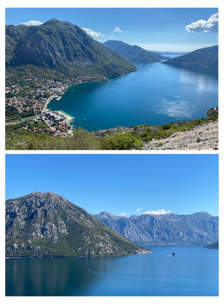 Visite des bouches de Kotor en débutant par le joli village de Perast, ancien repaire de corsaires. Un lieu plein de charme où l’on trouve encore de nombreux palais (il y en avait auparavant 200, elle en compte désormais 17) mais aussi pas moins de 14 églises / chapelles. Tout cela dans un environnement somptueux, au cœur de la baie de Risan, entre mer et sommets abrupts. Sans oublier les deux petits îlots qui lui font face, dont l’un abrite la fameuse lady on the rocks, l’église Notre Dame du rocher. Un petit îlot qui nous rappelle notre voyage en Slovénie.